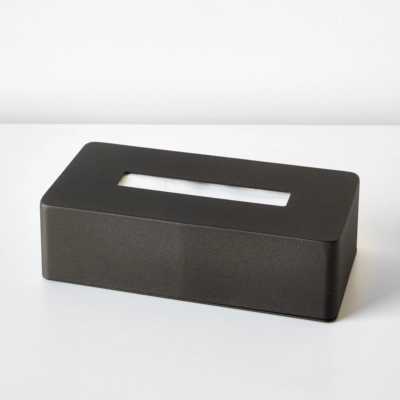 Ultra functional with a clean minimalistic design. You’ll love the way this matte black tissue holder looks in your bathroom. The 2-piece sturdy steel tissue box is coated in a textured finish. Easy to refill, simply remove the cover and add more tissues to the base. This design feature hides the number of tissues remaining in the box. Finished with rounded corners, this modern tissue holder dares to be effortless and understated. Less is more with this black tissue case.