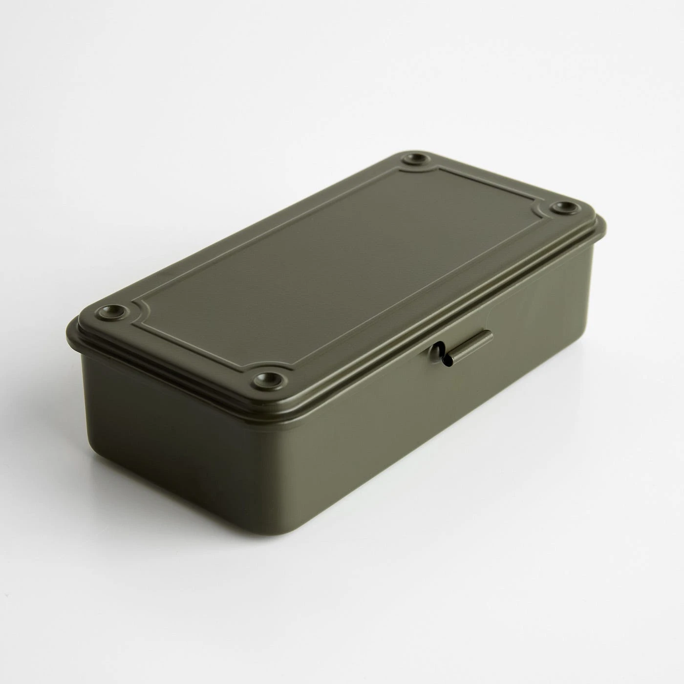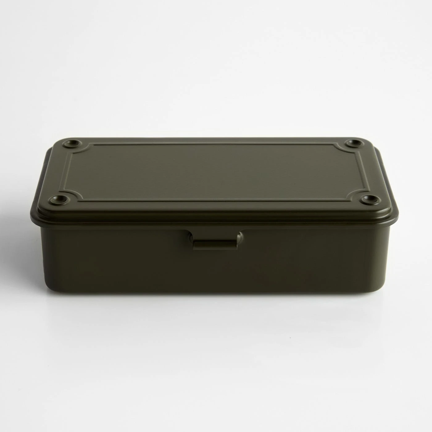 The Toyo Steel Military Green Stackable Storage Box is designed with organization in mind. Made in Japan since 1969, this container makes use of Toyo’s innovative technology developed to make a completely seamless toolbox. It features a flat, hinged lid constructed from a single piece of steel, eliminating sharp edges while maintaining rugged durability. Its matte olive green factory baked finish is lightly textured and features four feet formed into the bottom with corresponding lid divots for secure stacking. The 7.9-inch size and lightweight yet durable construction make it useful for containing smaller items throughout the house, garage or on the go.