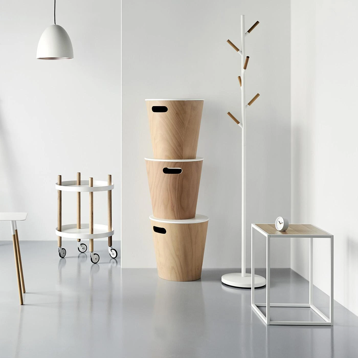 Think of it as the ottoman, reimagined. This perch is more sculptural and has the added bonus of being able to store everyday essentials; just lift its crisp white cover. A study in shape and form, the natural wood-finish has been plied into a tapered cylindrical shape for geometric interest. Use it as your go-to storage for shoes, hats, mittens – the possibilities are endless. Speaking of multi-tasking, it’s also useful as a side table, extra seating or bedside table.